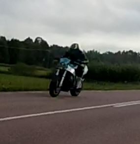 Föraren var iklädd helsvart läderställ, som hade vitt ”Dainese” märke på ryggen, mörk hjälm med gula detaljer. Motorcykeln var av äldre modell sportmotorcykel, turkos till färgen åtminstone på bakkåporna.